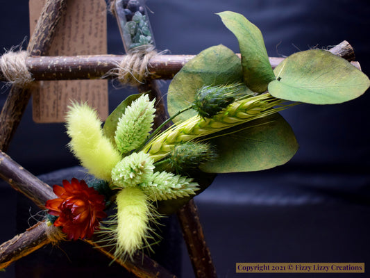 Hazelwood Pentagram with Green Aventurine and Dried Flowers