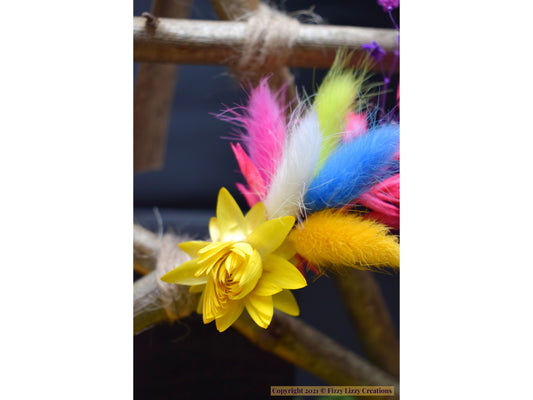 Hazelwood Pentagram with Rose Quartz and Dried Flowers