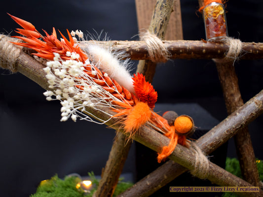 Hazelwood Pentagram with Carnelian and Dried Flowers