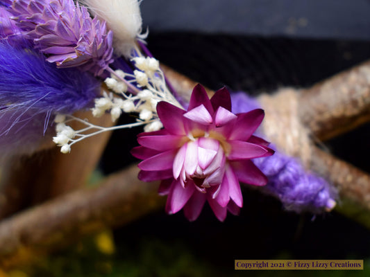 Hazelwood Pentagram with Amethyst and Dried Flowers