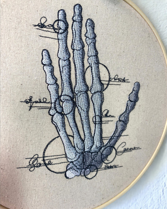 Hand Skeletal Anatomy Embroidered Wall Art