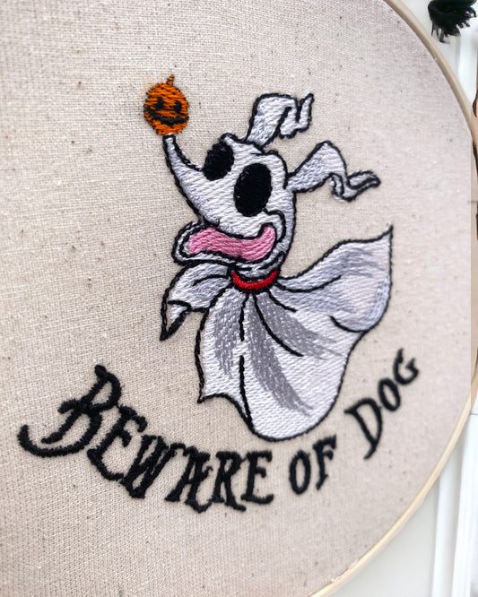 Beware of the Dog Ghostly Dog Embroidered Wall Art