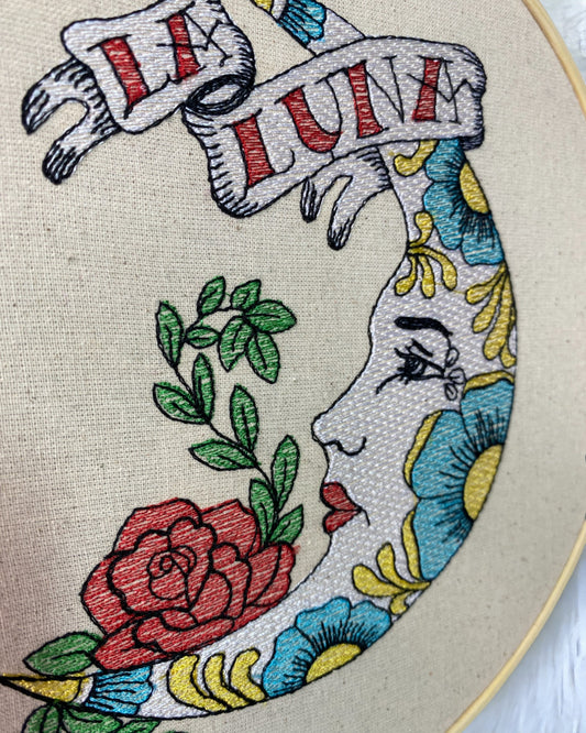 La Luna Traditional Style Tattoo Moon Embroidered Wall Art